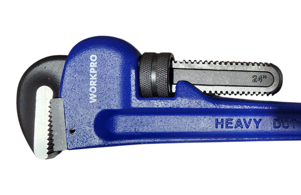 WORKPRO 600MM Pipe Wrench represents premium heavy-duty capability for large-scale industrial pipe work. The durable cast iron handle withstands extreme torque and demanding site conditions without compromise. Forged steel grip delivers exceptional holding power on oversized pipes and fittings, preventing slippage during critical operations. Replaceable hook and gripper components enable cost-effective maintenance and extended tool service life across intensive professional use. The extended 600MM length provides maximum mechanical advantage for seized connections and large-diameter applications common in industrial infrastructure and utility work. Precision-engineered jaw mechanism accommodates extensive pipe size ranges with reliable, consistent performance. Essential for industrial plumbers, maintenance engineers, and infrastructure specialists managing major pipe installations and repairs. Exceptional durability ensures reliable performance on demanding commercial, industrial, and utility projects in professional environments.