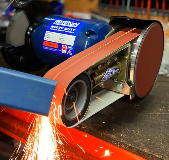 The Multitool is a renowned, Australian designed belt grinding attachment which can be used on most bench grinders. The technology replaces the grinding wheel and converts a traditional grinder into a sophisticated work station ideal for sanding, grinding, sharpening, shaping, polishing and refinishing.