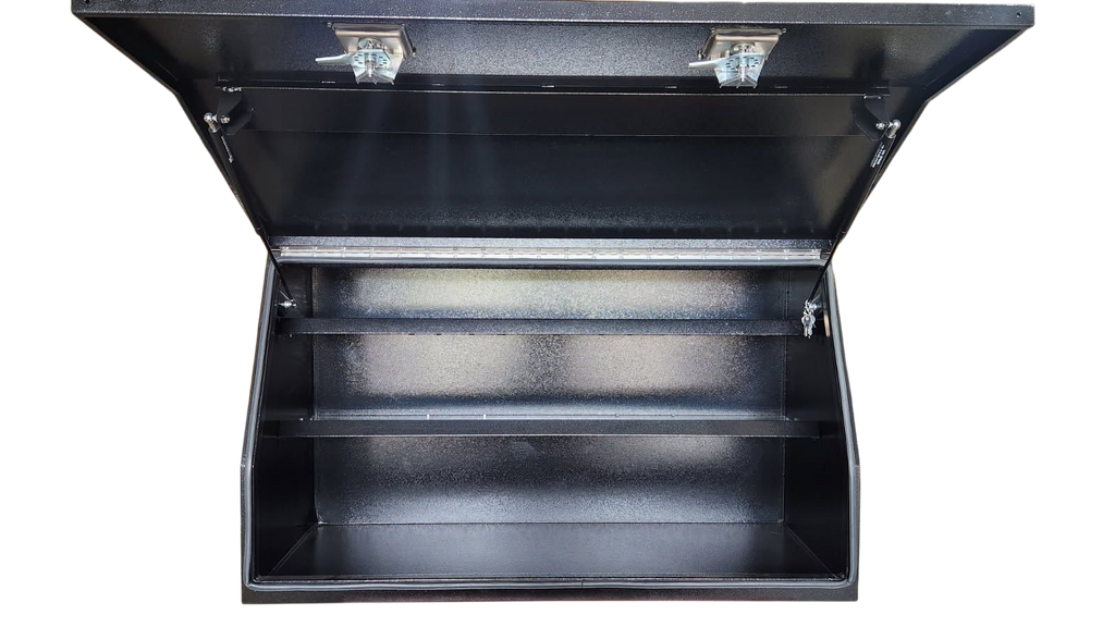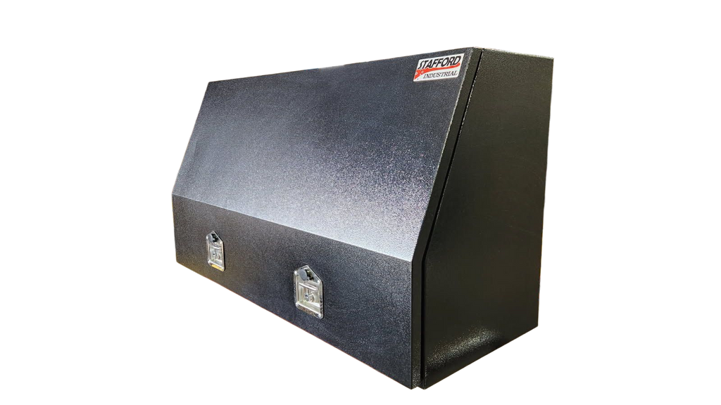 The Stafford 1220mm Angled Ute Box is a heavy duty gauge steel fabricated tool box. Water proof and lockable, this tool box is made to combat the harsh environments of living on the back of your Ute. With 1.5mm thick walls, two removable storage shelfs, gas struts and a powder coated finish this large storage space is the tradesman’s best mate.